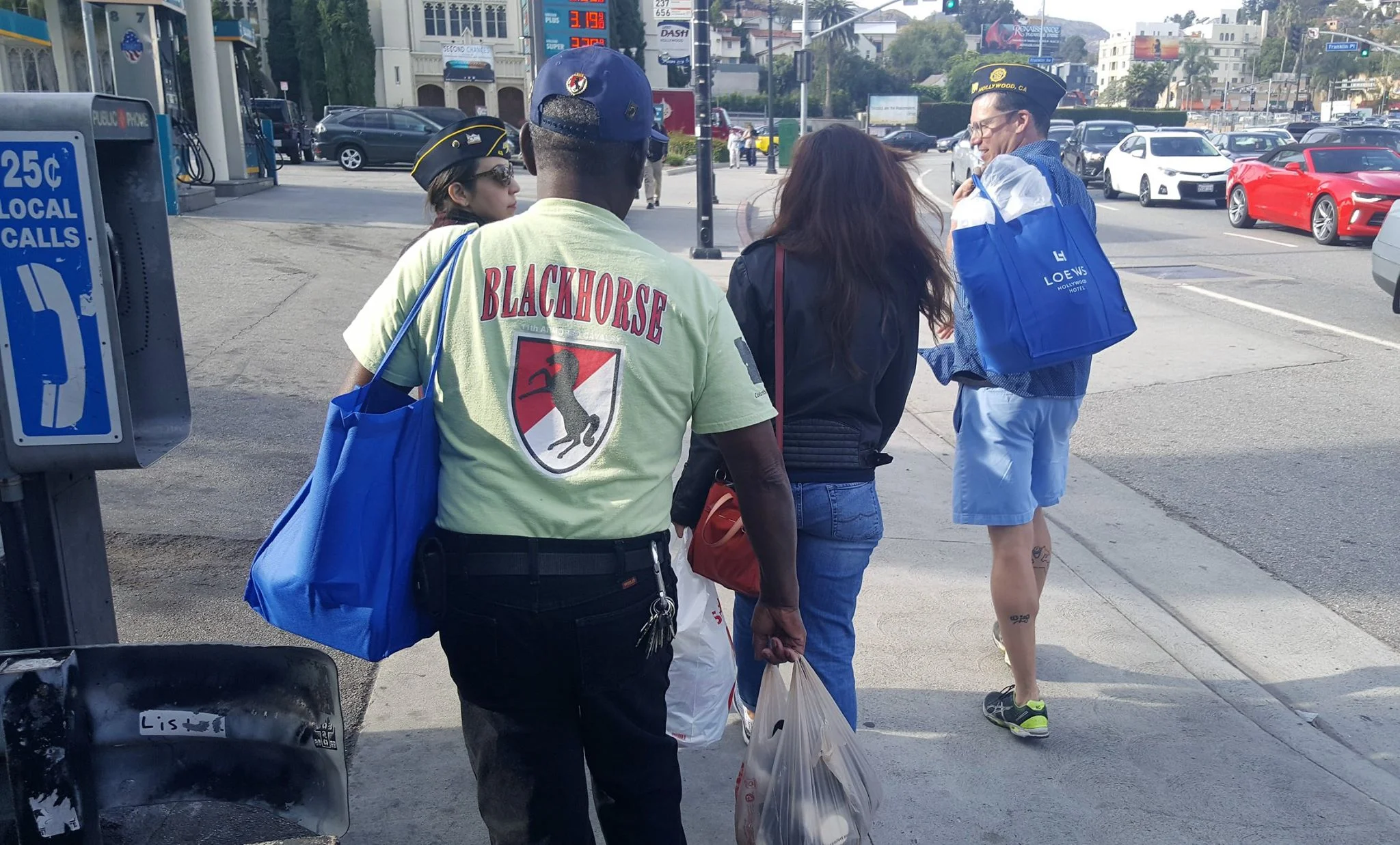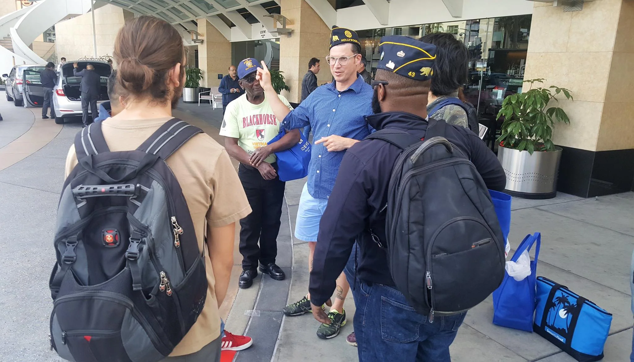 HOLLYWOOD, Calif. -- With a sense of community and a desire to help, members of American Legion Hollywood Post 43 hit the streets of Hollywood to distribute 200 fresh, vegan burritos, personal hygiene kits and items like socks and belts to area homeless. Loews Hollywood Hotel provided the food, facilities, and more volunteers.